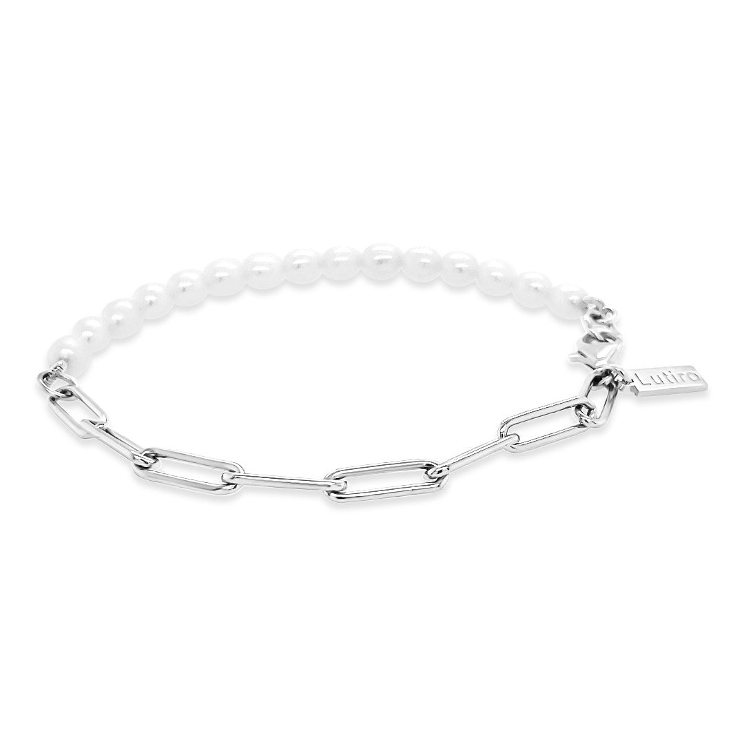 Refreshingly elegant, this freshwater pearl with paperclip design is a must for any fashionable jewelry enthusiasts. Designed with elegance and sophistication in mind, this beautiful piece combines two incredible styles that beautifully fit together. Add this Sterling Silver 925 bracelet to your daily wardrobe, and complement the style with a matching necklace from our signature Lutiro collection.