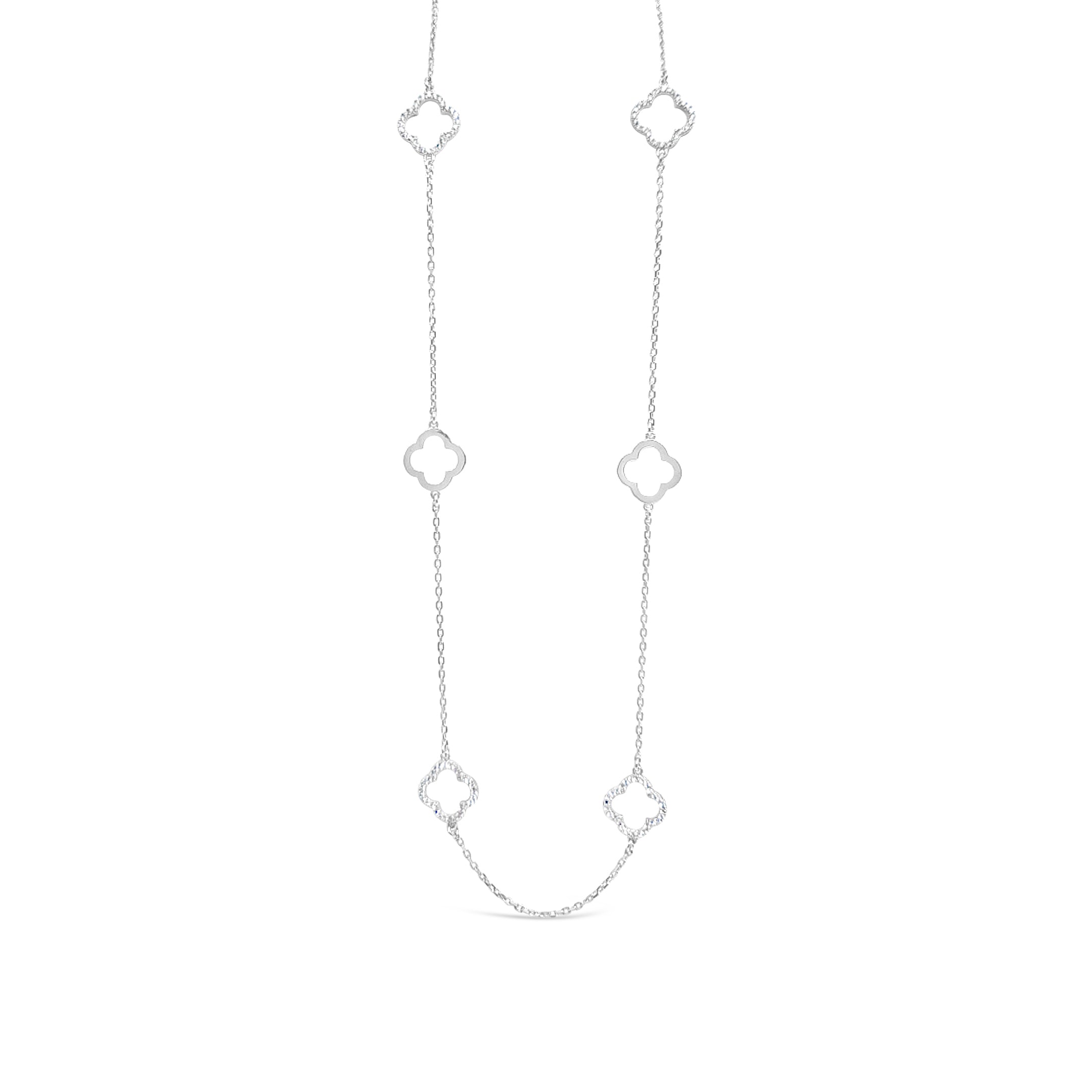 Long Six Four Leaf Clover Plain & CZ Necklace