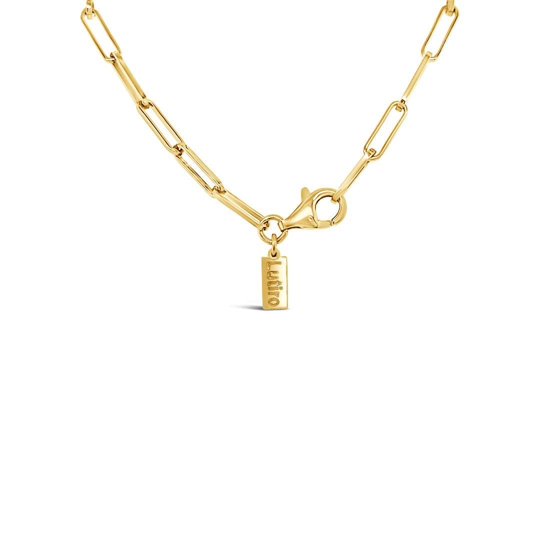Our Paperclip Chain Necklace with Pink Sapphire is crafted in 14k gold-plated on Sterling Silver 925 and designed in a classic 17-inch length.